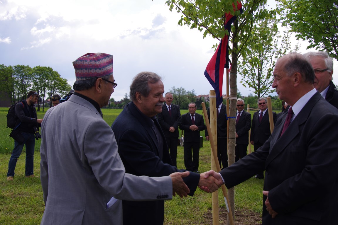 Nato se je mag. Aswin Kumar Shrestha v svojem pozdravnem govoru zahvalil v imenu Vlade Republike Nepala in v svojem imenu Nuši Kerševan in Janiju Vogelniku, članu Društva zeleni prstan, ki je dal pobudo donatorstva za posaditev drevesa prijateljstva v zahvalo za pomoč Slovenije Nepalu ob prvi obletnici tega rušilnega potresa. Na tem slovesnem dogodku so bili prisotni številni udeleženci, delegacija Vlade Republike Slovenije, njena